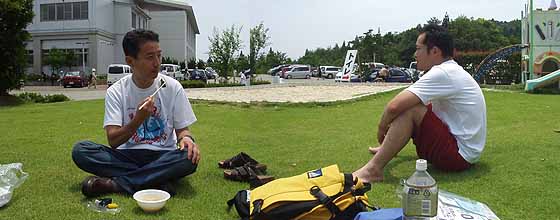 とにかくトランペッターKさんが凄かったです。初ハーフを大激走の好タイム! ![]() ゴール後の充実感と満足感と鍋とトラKさんとラガさん。いい天気でした。暑かった! ![]() ◆第2回定期練習会を開催しました