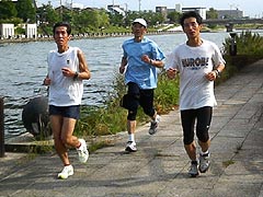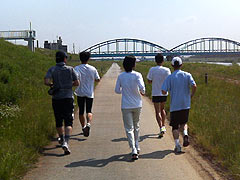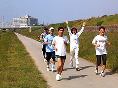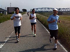 富山市体育館⇒赤十字病院裏⇒神通川河川敷⇒土川黒瀬で折り返し ⇒有沢線下から市街⇒大泉から、いたち川コース⇒体育館
