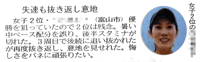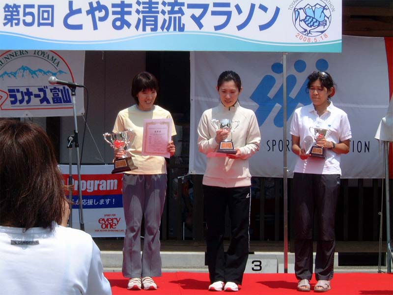 富山県唯一の貴重なフルマラソンの大会「チャレンジin神通」改め「とやま清流マラソン」。富山新聞の名が大きく出ていますが、元々は雷鳥ランニングクラブさんの手作りのフルマラソン大会です。未公認コースながら距離計測はバッチリとのこと。当クラブからは、JN、mic、fu、JUNKの4選手が出場。残念ながらK、Fの2選手は体調不良にて欠場でしたが、Kさんが現地を応援取材されました。mic選手が見事に表彰台に上がられました(拍手)。客人のE塚さん、Hサさんも快走、写真をご覧下さい。clickで多少拡大です。(fuさんの写真のみ、某氏撮影のものを勝手に拝借してます)